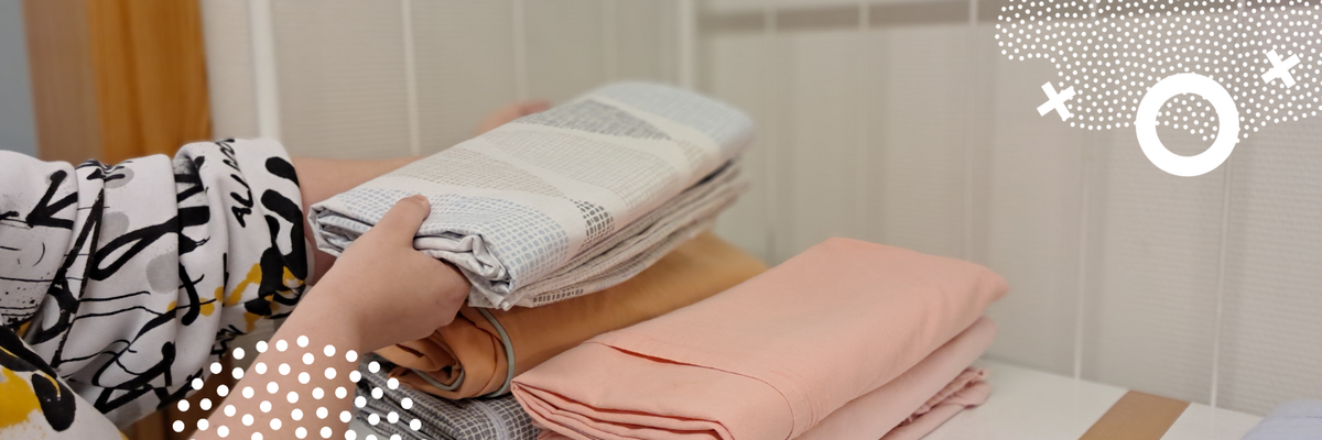Pesulassa peseytyy tekstiilit, jotka kestävät rumpukuivauksen: lakanat, pöytäliinat, vaatteet ja työvaatteet.