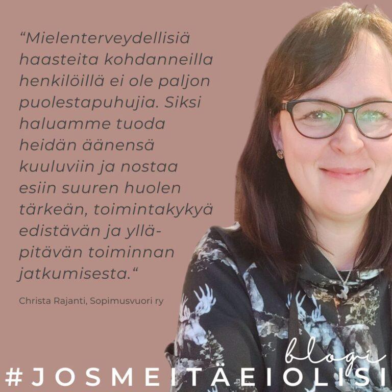 Kirjoitus on julkaistu alun perin verkossa 31.10.2024 osana #JosMeitäEiOlisi-kampanjaa. Mielenterveyskuntoutujien psykososiaalista klubitalomenetelmää on sovellettu Suomessa syksystä 1995 lähtien,…