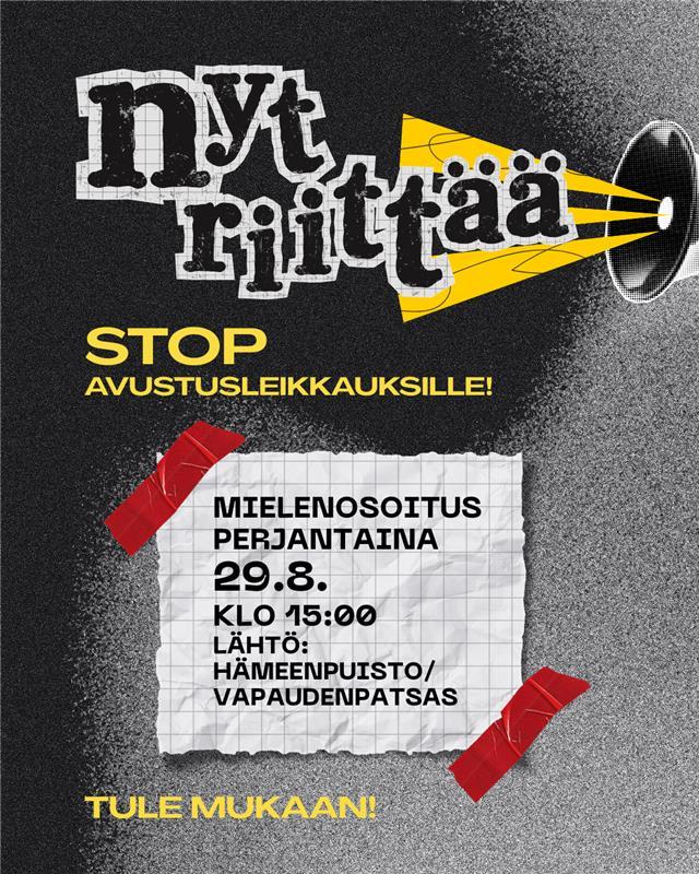 Joukko pirkanmaalaisia sote-järjestöjä järjestää Nyt riittää! – STOP avustusleikkauksille -mielenosoituksen Tampereella perjantaina 29.8. klo 15-16. Mielenosoitus on poliittisesti ja uskonnollisesti…